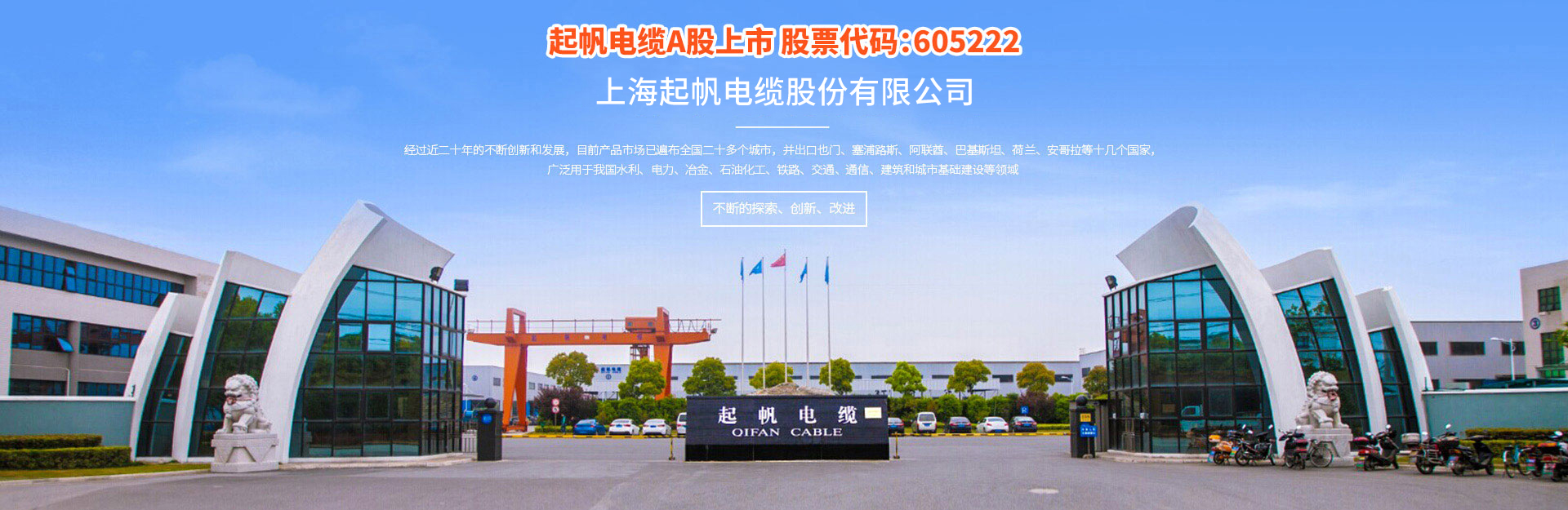 上海起帆電纜股份有限公司,公司是生產(chǎn)電線電纜的專業(yè)骨干企業(yè),公司成立于1994年,經(jīng)過(guò)24年的風(fēng)雨歷程,現(xiàn)已成為擁有面積350000平方米,擁有高中級(jí)技術(shù)員120多人,年生產(chǎn)能力近80億人民幣的規(guī)模企業(yè)。公司產(chǎn)品有各類高低壓電力電纜,電氣裝備用電纜和通信電纜,主要產(chǎn)品規(guī)格有:聚氯乙烯電力電纜、交聯(lián)氯乙烯電力電纜、低煙無(wú)鹵環(huán)保型、耐火電力電纜、控制屏蔽型電纜、橡套電纜及預(yù)分支電纜等,上千種規(guī)格。